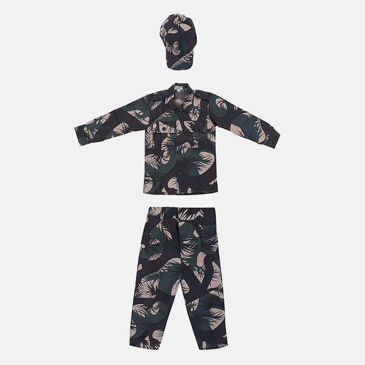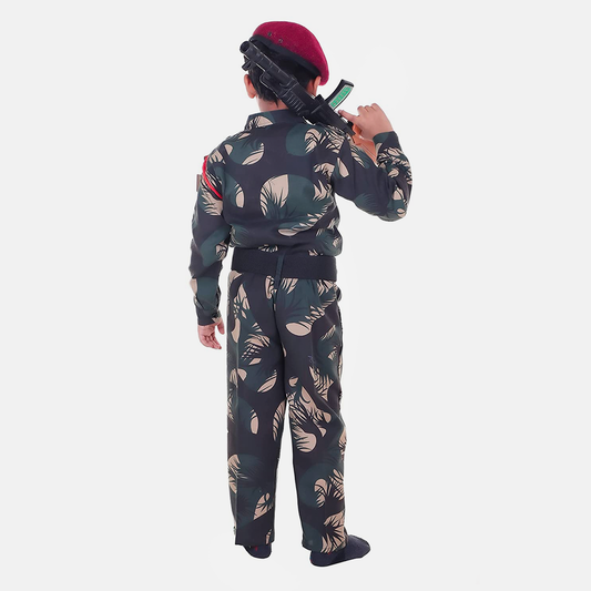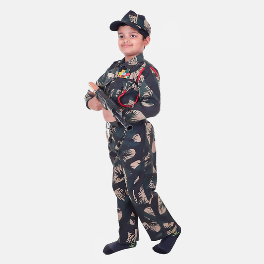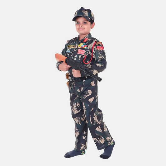 Army Dress for Kids, Jungle Print Costume for Republic Day, pecial Badges, Cap, Lanyard, 3Y
