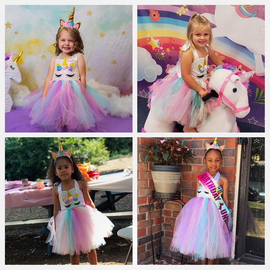 Unicorn Dress Frill Hopscotch Skirt Outfit Tutu Princess Costume With Headband For Baby Girl & Kids - 2PC