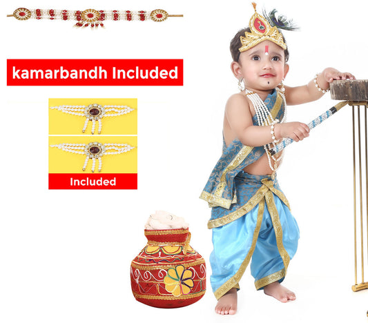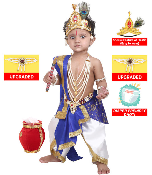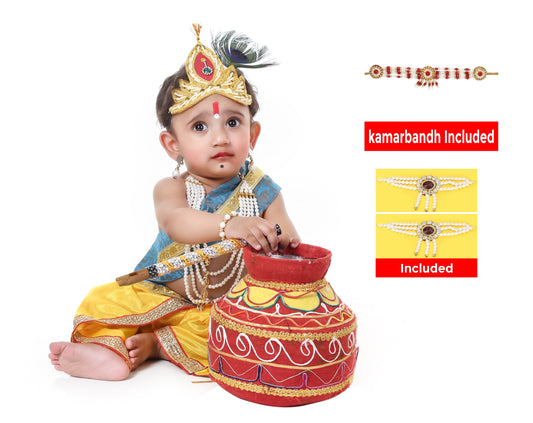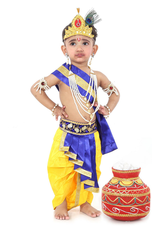 Raj Fancy Dresses Krishna Dress for Kids, Baby Krishna Dress for Janmashtami with Krishna Mukut