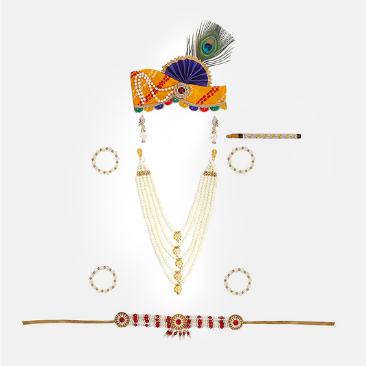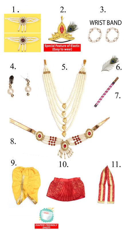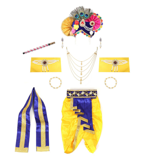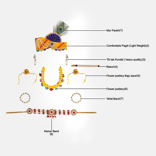 Baby Krishna Dress for Janmashtami with Krishna Mukut, Peacock Feather & Flute - Jewel-Pagri-Mala