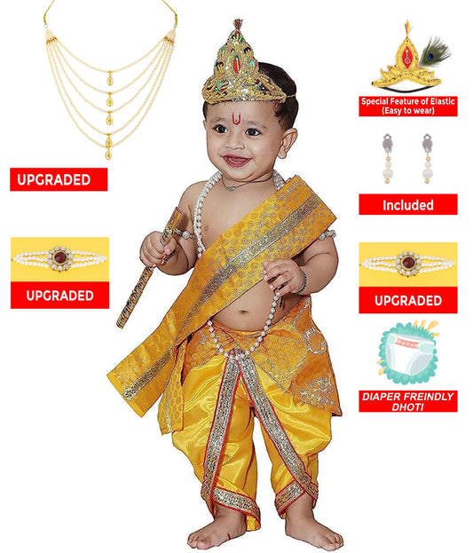 Baby Krishna Brocade Fabric Janmashtami Mythological Character Costume - Yellow
