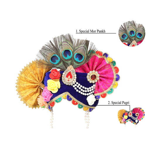 Baby Krishna Dress for Janmashtami with Krishna Mukut, Peacock Feather & Flute - Jewel-Flower-Pagri