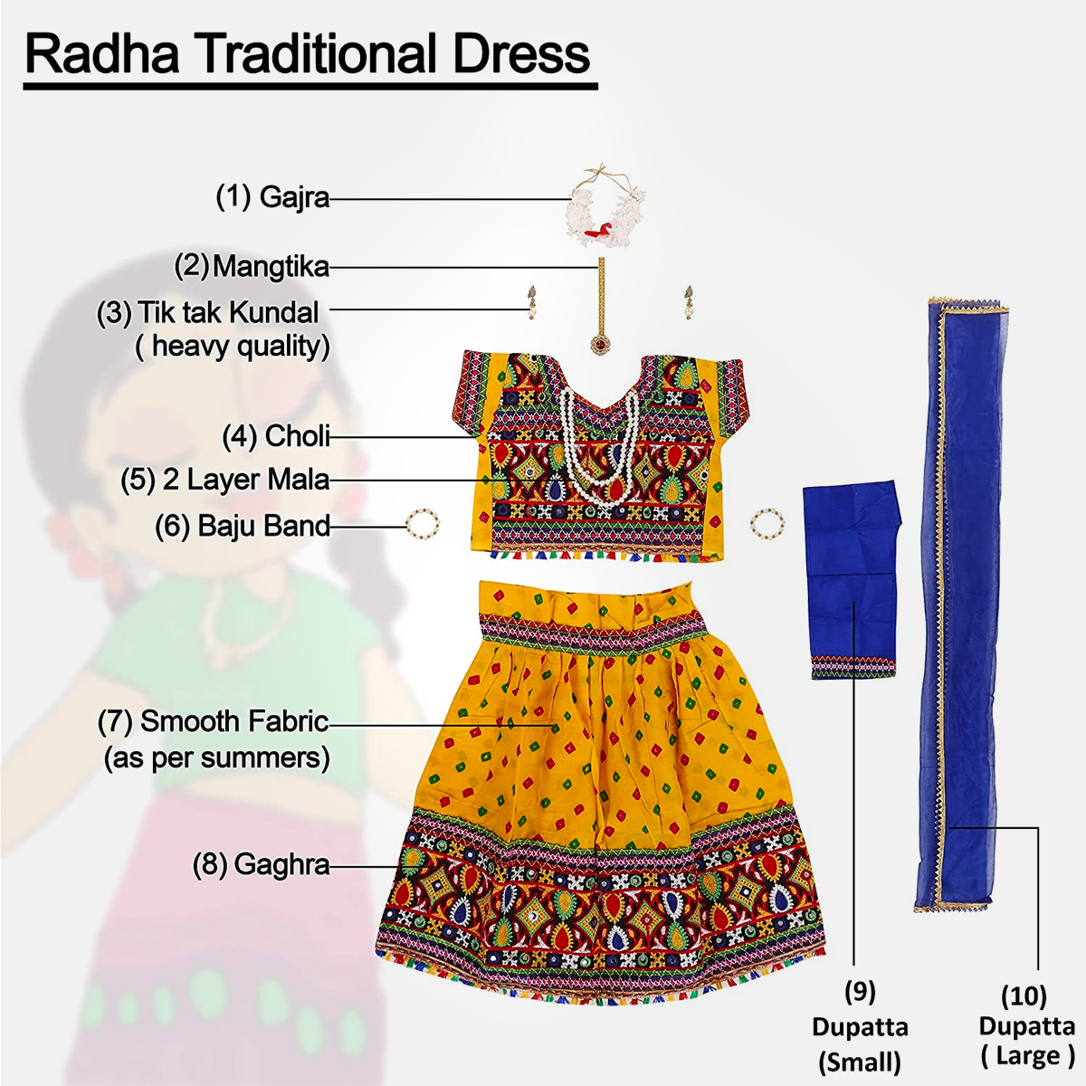Radha and Krishna Brocade Fabric Janmashtami Mythological Character Costume - RadhaJi-Lemon