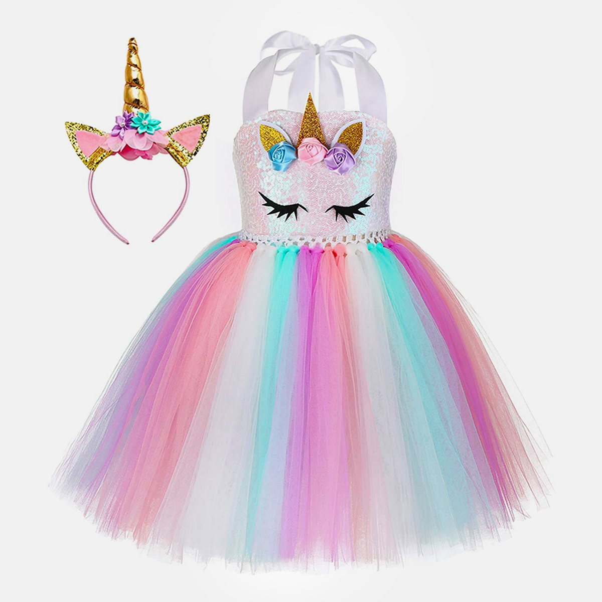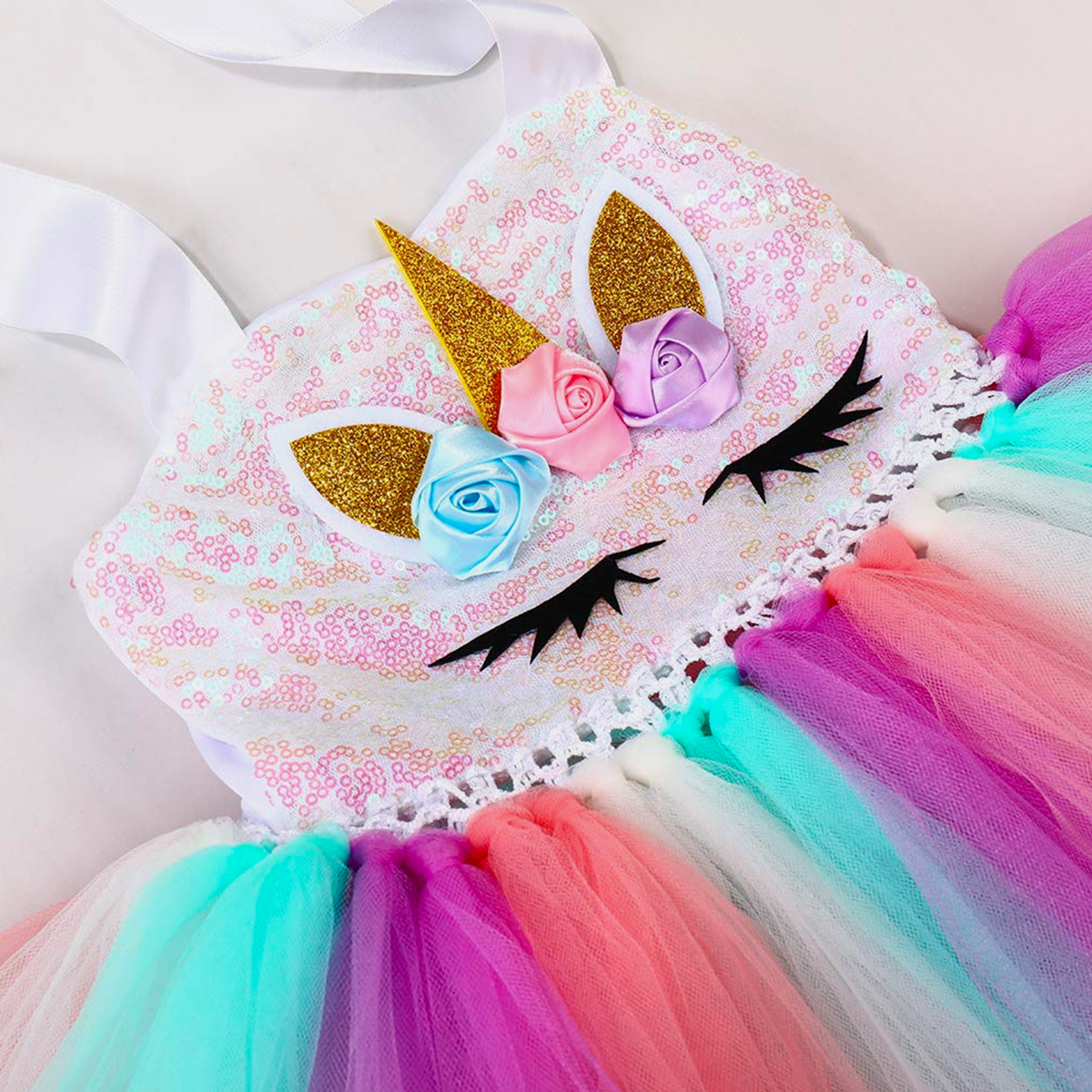 Unicorn Dress Frill Hopscotch Skirt Outfit Tutu Princess Costume With Headband For Baby Girl & Kids.